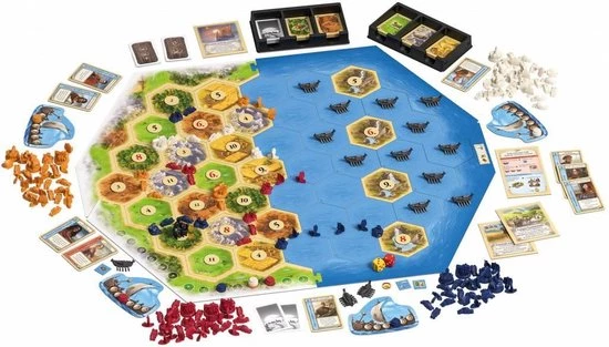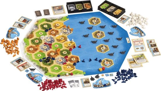 | Verpakkingsinhoud | Inhoud:, 9, landtegels, 95, kaarten, 39, speelstukken, 6, randdelen, 75, fiches, 1, stickervel, 6, tableaus, 20, plastic, zakjes, de, spelregels |