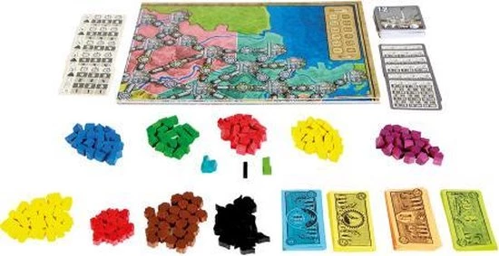 | Verpakkingsinhoud | Inhoud:, 1, dubbelzijdig, speelbord, 132, houten, huisjes, 84, houten, brandstoffenblokjes, 4, tegels, geld, 6, overzichtskaarten, 44, elektriciteitscentralekaarten, 5, fiches, spelregels |