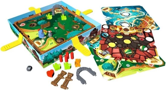 Slide Quest is een fantastisch bordspel waarbij je samen met je vrienden de ridder probeert te helpen om het einde van elke kaart te bereiken en daarbij valstrikken en obstakels te vermijden. Gebruik de hendels (die je aan de doos vastmaakt) om de ridder te laten schuiven, maar let op: er zijn diverse hindernissen, bewakers en een schurk die jouw weg moeilijk maken en jouw levensteller laten dalen… Geweldig spel voor het leren van behendigheid en samenspel.