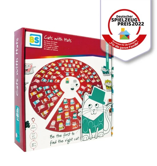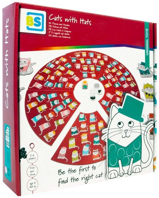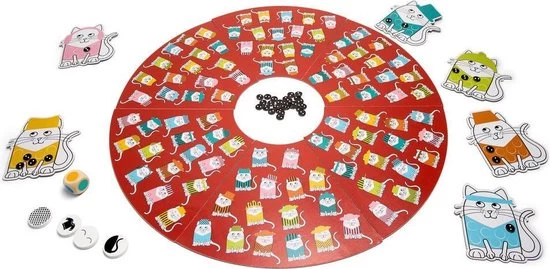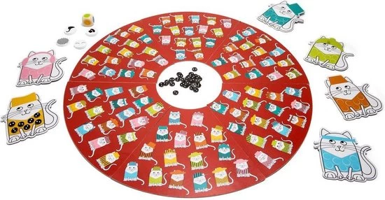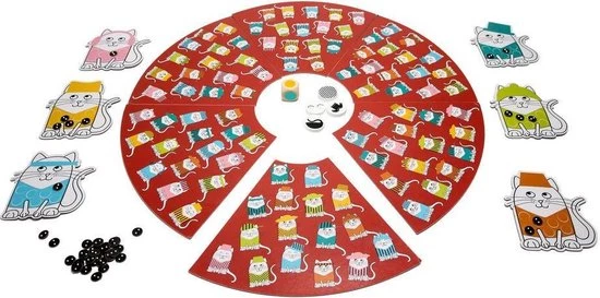 Gooi de fiches op, rol met de dobbelsteen en combineer alle eigenschappen. Vind nu als eerste de poes met deze eigenschappen en win een knoop voor jouw eigen kat. De eerste speler met een volledig beknoopte kat, wint het spel.