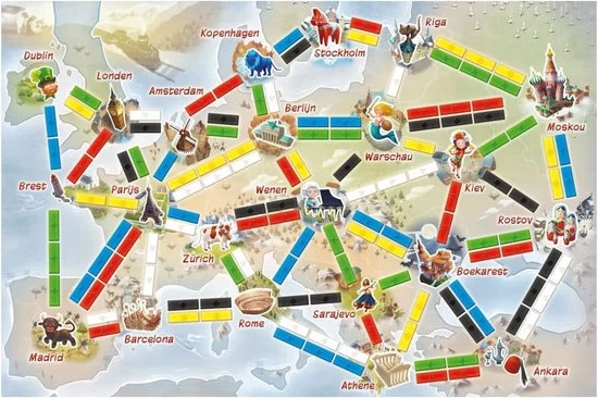 Speciaal voor de jongste avonturiers: Ticket to Ride Mijn Eerste Reis, laat kinderen kennis maken met de wondere wereld van Ticket to Ride! Het doel van Ticket to Ride Mijn Eerste Reis is hetzelfde als bij de originele versie. Spelers gaan met elkaar de strijd om de meeste treinkaarten te verzamelen, routes te claimen en daarbij beroemde steden in Europa met elkaar te verbinden. Ga je vanaf Moskou, via Berlijn naar Londen? Of probeer je misschien de Oost-West bonuskaart te verdienen door de treinroute vanaf Madrid helemaal naar Ankara te claimen?