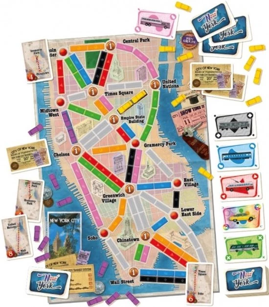 Ticket to Ride New York is een kleinere en kortere editie van Ticket to Ride, waarin je niet per trein, maar per taxi reist in het Manhattan van de jaren 60!