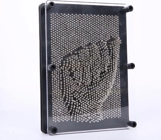 Laat je creatieve kant zien met Pin Art ! Vereeuwig je handen, je gezicht of andere voorwerpen in indrukwekkende sculpturen gemaakt van metalen pinnen. Met het 3D spijkerspel maak je binnen enkele seconden prachtige driedimensionale beelden. Hiervoor hoef je enkel het lichaamsdeel of een voorwerp van achteren tegen de spijkers te drukken, waarna je het prachtige kunstwerk kunt bewonderen. Laat het spijkerspel rechtop staan ??en maak indruk met de individuele decoratie in het woonkamer.