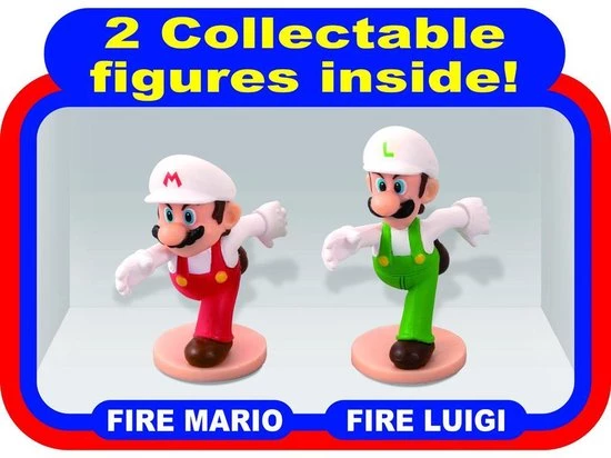 2 Super Mario-personagefiguren zijn inbegrepen.
