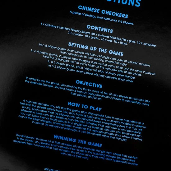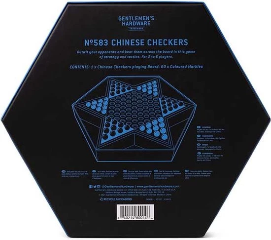 Ben jij een pro in dammen? Probeer dan eens het Gentlemens Hardware Chinese Checkers strategische damspel. Dit bordspel kan gespeeld worden met minimaal 2 en maximaal 6 personen. Het doel is om al jouw pionnen uit je eigen vak zo snel mogelijk aan de overkant van het bord te krijgen.