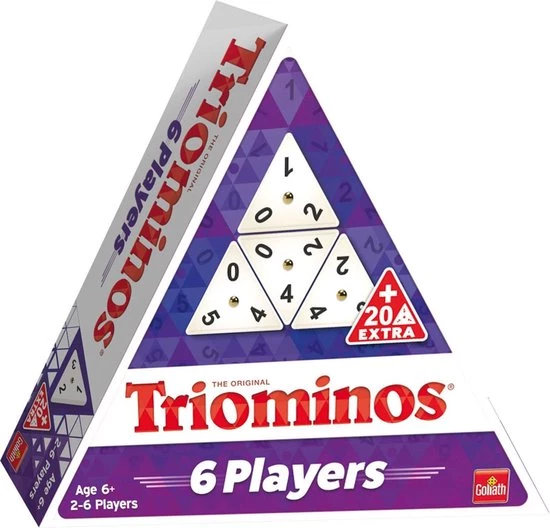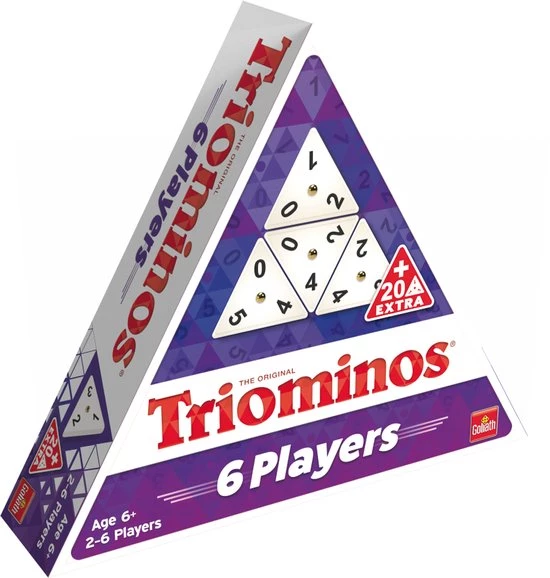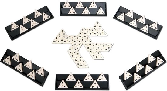 Een handige uitbreiding op het originele Triominos spel! Nu kun je tot wel 6 spelers spelen. Een tactisch spel met driehoekige, genummerde stenen. Zoek je kansen, leg ze snel aan en scoor zo veel mogelijk punten. Bij dit spel gaat het niet alleen om inzicht maar ook om tactisch spelen; Sommige aangelegde figuren leveren je namelijk ook veel punten op!
