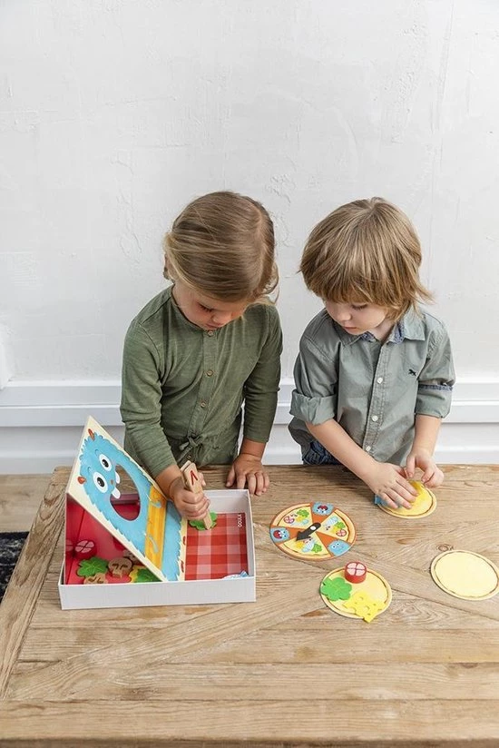 Maak je eigen pizza voordat het blauwe monster hem helemaal opeet! Spin aan het rad en probeer de onderdelen van de pizza te ontvangen. Heb jij als eerst jouw pizza compleet of is het monster je voor?