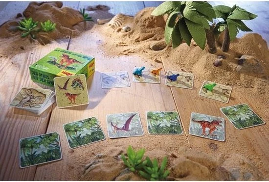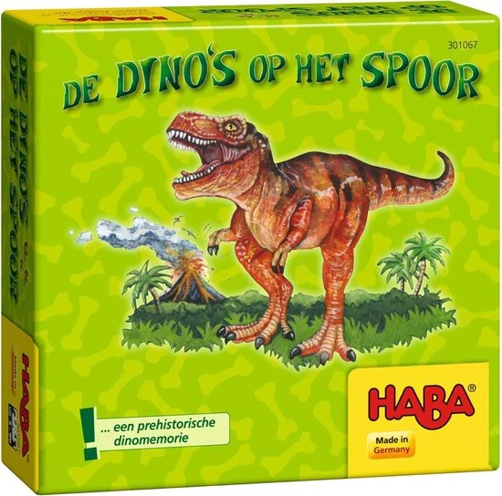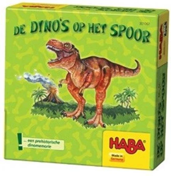 Dino’s op het spoor van het Duitse merk Haba is een memoryspel. In het oerwoud zijn dino?s ontdekt! Meteen gaan alle spelers op weg om ze met eigen ogen te bewonderen. Maar het is helemaal niet zo gemakkelijk om deze enorme oerbeesten te vinden. Wie krijgt het voor elkaar om de gezochte dino’s ??n voor ??n om te draaien en als eerste het doel te bereiken? Cadeautip! Bevat: 4 dino?s in 4 kleuren, 26 zoekkaartjes, 5 dinokaartjes, 1 fopkaartje, 4 routekaartjes, 1 handleiding met spelregels Speelduur: 10 minuten Spelers: 2 tot 4 Vanaf 5 tot 99 jaar Materiaal: karton, hout Merk: Haba Waarschuwing: niet geschikt voor kinderen jonger dan 3 jaar. Kleine onderdelen. Verstikkingsgevaar. Het speelgoed van Haba overtuigt al vele generaties lang door z?n doordacht speelgoed met hoge speelwaarde, waar de kinderen fantasievol mee kunnen spelen en dat afgestemd is op hun leeftijd. Dit mede dankzij hun designers en spellenredacteuren die zich laten inspireren door de natuur of door mensen, op reis of thuis. Het houten speelgoed wordt voor het grootste gedeelte geproduceerd in Bad Rodach, Duitsland. Het hout dat hiervoor gebruikt wordt is afkomstig uit duurzaam bosbeheer!