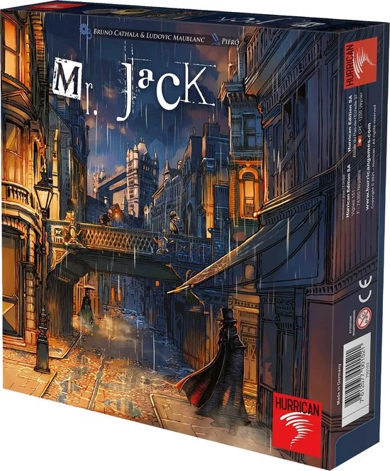 Mr. Jack ( Londen ) Hurrican Games NL. Detective bordspel voor 2 spelers (vanaf 9 jaar) in Londen. Spelregels zijn in het Nederlands, Frans & Duits. Het doel van dit spannende detective spel voor 2 spelers is: