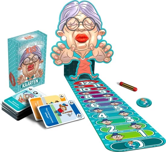 | Verpakkingsinhoud | 55, speelkaarten, kussende, oma, stempel, schmink, potlood, trotsheidsmeter, fiche, spelregels |