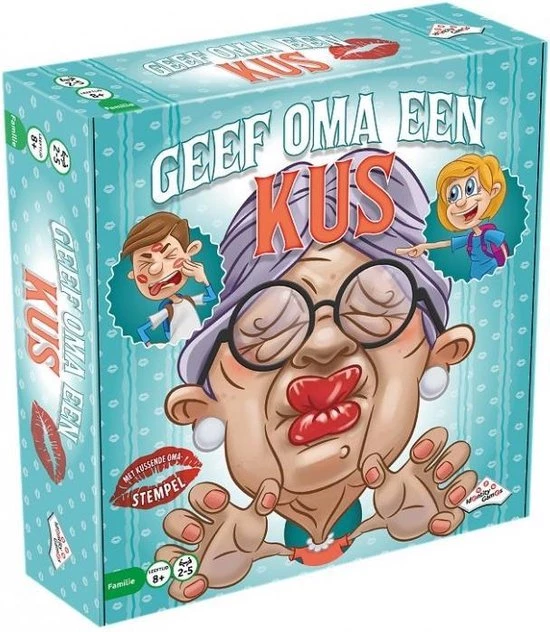 Een grappig kaartspel waarin je om de beurt aan oma vertelt wat voor gew?ldige dingen je hebt gedaan. Bijvoorbeeld dat je het winnende doelpunt hebt gescoord of geld hebt ingezameld voor giraffen met hoogtevrees. Oma wordt steeds trotser en trotser. Degene die haar t? trots maakt is de pineut en krijgt een lekkere natte zoen. De eerste speler met 3 lipafdrukken op het gezicht verliest het spel!