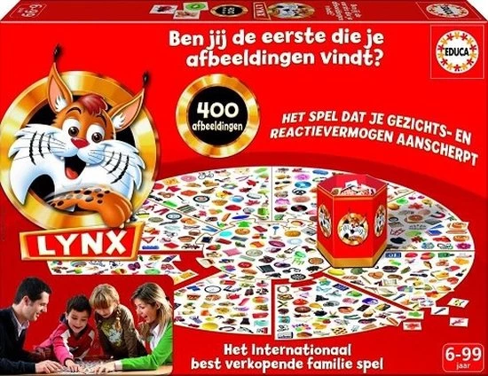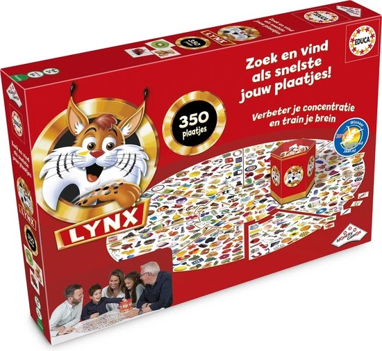 Verbeter je concentratie en train je brein met Lynx! Zet het spelbord in elkaar, schud de kaartjes en neem er 3. Zoek en vind als snelste jouw plaatjes. Waar zijn de koekjes, de gitaar en de tennisbal? Vind als eerste jouw 3 plaatjes op het bord en win!