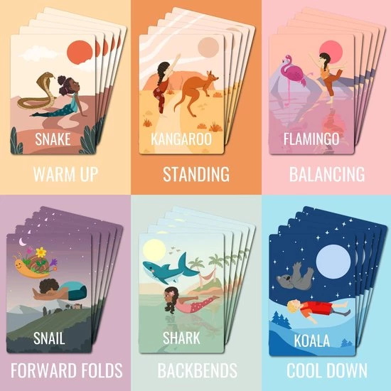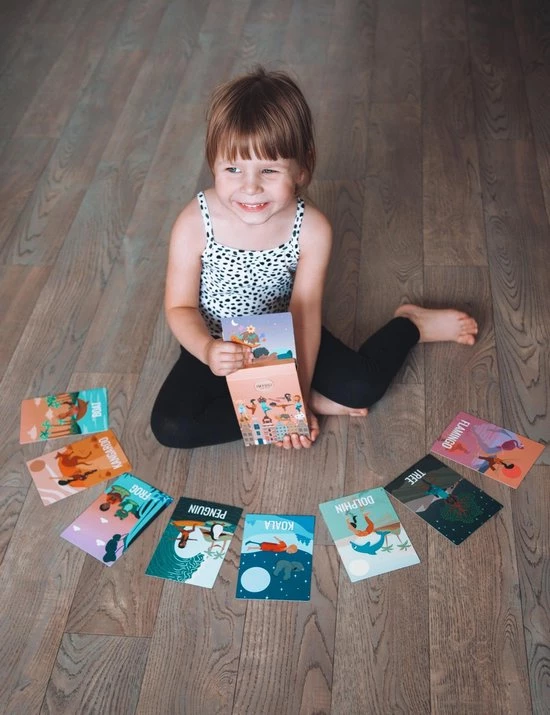 Met de hand ge?llustreerde inclusieve yogakaarten voor kinderen. Yoga is een geweldige bewuste activiteit voor de kleintjes en helpt het zelfvertrouwen, lichaamsbewustzijn en mindfulness te vergroten. Het IMYOGI-deck bevat 30 kaarten, verdeeld in 6 op kleur afgestemde categorie?n die je door een goed afgeronde yogapraktijk leiden, van warming-up tot cooling-down. Het maken van sequenties is een fluitje van een cent voor u en zo leuk voor de kleintjes. De achterkant van elke kaart is in kleur geco?rdineerd om de categorie aan te geven. Het bevat ook eenvoudige stappen om je correct en veilig in de pose te begeleiden, samen met de naam van het dier en zijn leefgebied, een leuke manier om leren over yoga en de natuur te combineren. Geweldig als: Verjaardag / kerstcadeau Rustige hoekjes Hersenen breken Inleiding tot mindfulness voor de kleintjes