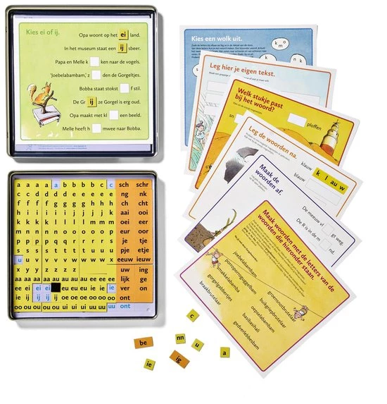 Met deze magnetische spellingsdoos kan elk kind thuis eindeloos oefenen met grappige en leerzame taalspelletjes die helemaal aansluiten bij school. Oepselabammie, hoeveel woorden kun je met deze letters maken? Hoeveel magneetjes heb je nodig voor het woord klauwen? En ken jij een woord dat je van achteren naar voren en andersom kunt lezen? Met 16 werkbladen en 180 magnetische letters. Joebelabambam!