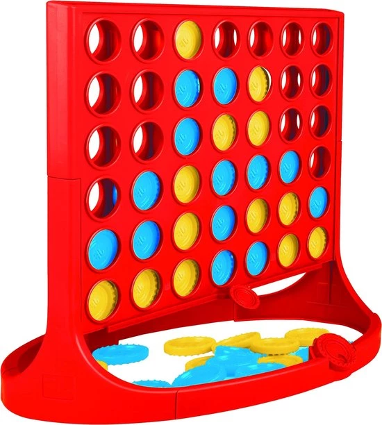 Als je aan de beurt bent, laat je een van jouw schijfjes in een willekeurige gleuf aan de bovenkant van het speelraam vallen. Blijf je tegenstander steeds ??n stap voor om zijn pogingen te blokkeren en hem op het juiste moment verpletterend te verslaan. Als je tegenstander te dicht bij 4 op een rij komt, blokkeer je hem of haar met een schijfje van jou! Speel om de beurt, val aan vanuit elke mogelijke hoek, totdat ??n speler 4 schijfjes van zijn/haar kleur op ?n rij heeft ? horizontaal, verticaal of diagonaal (schuin). Het originele spel vier op ?n rij is leuk en spannend voor jong en oud.