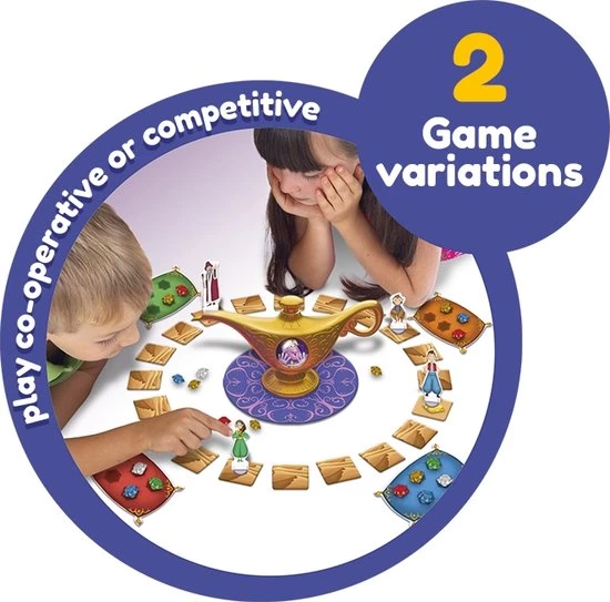 Aladdin en de Wonderlamp kan op twee verschillende manieren gespeeld worden: coöperatief (met elkaar) of competitief (tegen elkaar).