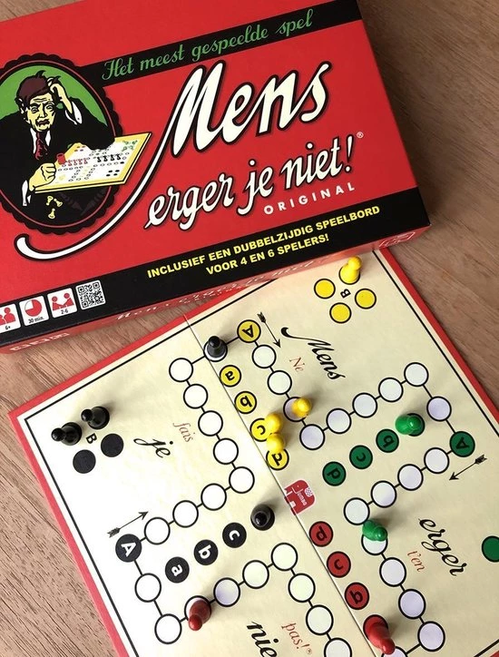 De originele uitvoering van het meest gespeelde spel! De manier om regenachtige zondagmiddagen door te komen, al is Mens Erger Je Niet eigenlijk altijd een vermakelijk spel. En denk erom als het niet gaat zoals je wilt: mens, erger je niet!