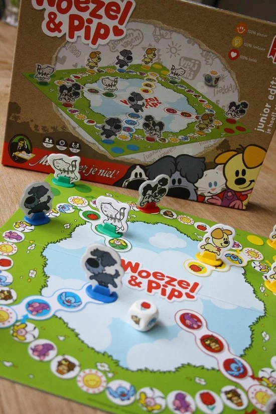Het klassieke Mens Erger Je Niet spel bordspel in een Woezel en Pip jasje!