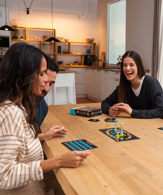 Test je woordenschat met het nieuwe partyspel Initials, van de makers van Party en Co! In dit spannende gezelschapsspel voor volwassenen en kinderen moet je zoveel mogelijk woorden bedenken met de verschillende letters van het alfabet om een fiche te winnen en het letterbord van jouw team te vullen. Maar wees snel! Elke ronde duurt maar 15 of 30 seconde, voor je het weet is je beurt weer voorbij! Daarnaast kan het andere team letters stelen en blokkades opleggen, waardoor de strijd spannend blijft tot de laatste letter!