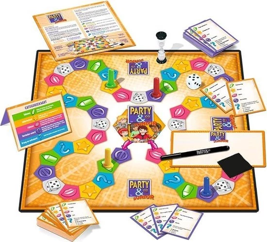 Party & Co. Junior is gemaakt voor kinderen van 8 tot 12 jaar en bevat opdrachten en vragen die zijn onderverdeeld in twee niveaus zodat iedereen op zijn eigen niveau mee kan doen. Voer samen met je team allemaal leuke opdrachten uit die je onderweg tegenkomt.