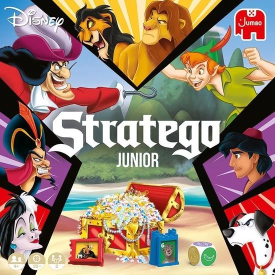 In Stratego Junior Disney nemen Disney?s meest geliefde helden het op tegen Disney?s meest iconische schurken! Stel in het geheim een superteam samen. Zullen jouw figuurtjes sterk genoeg zijn om de schatkist te vinden en het spel te winnen?