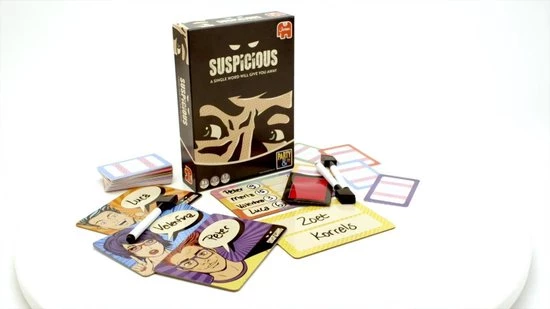 Suspicious is een spannend partyspel waarbij je moet opletten op elk woord dat je zegt!