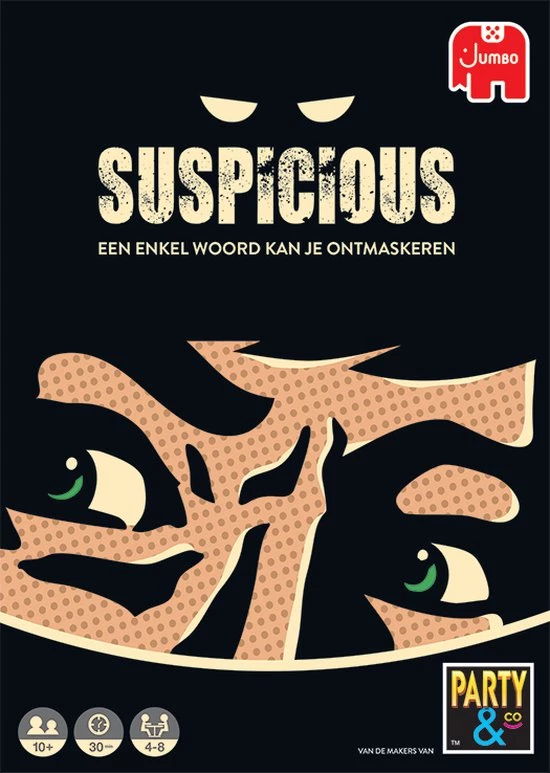 Er is een spion in de kamer, maar wie is het? Suspicious is een snel en opwindend partyspel waarbij de Spion niet weet dat hij of zij een Spion is, en de anderen niet weten dat ze Agenten zijn … Let op je woorden bij dit spannende partyspel, want een enkel woord kan jou ontmaskeren! Van de makers van Party & co.