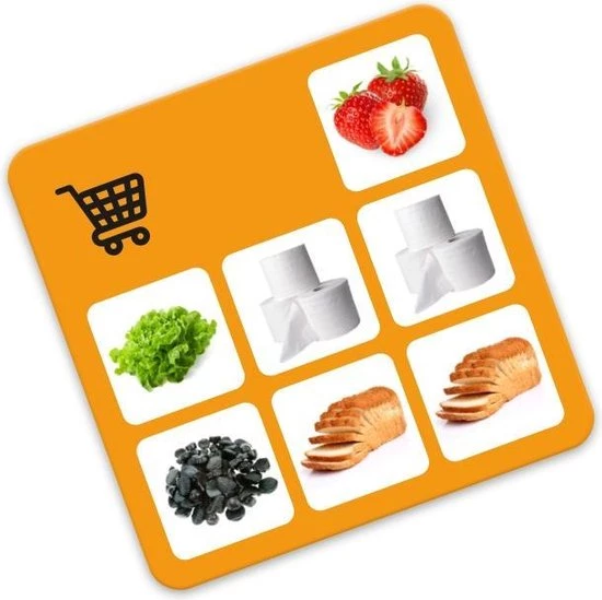 Speel het bekende boodschappenspel nu als kaartspellen, stel je geheugen op de proef! Welke speler onthoudt het beste wat er op zijn boodschappenlijstjestaat? Gebruik je geheugen en vul je winkelwagentje met de productendie je aan het begin van het spel op je lijstje zag staan. Maar pasop: de andere spelers stoppen dingen in je wagentje die je helemaalniet nodig hebt! Wie weet tot het einde zijn boodschappenlijstje teonthouden en komt thuis met de juiste producten?
