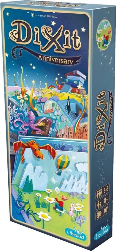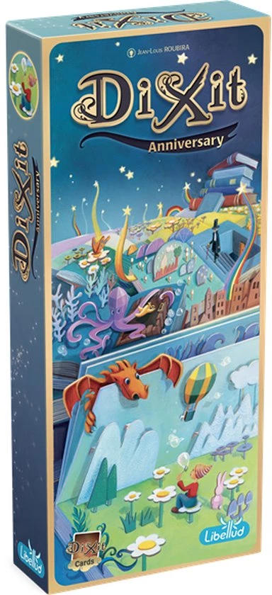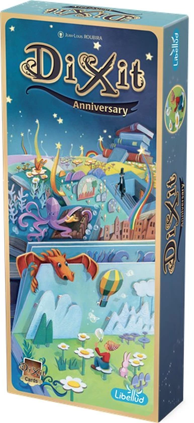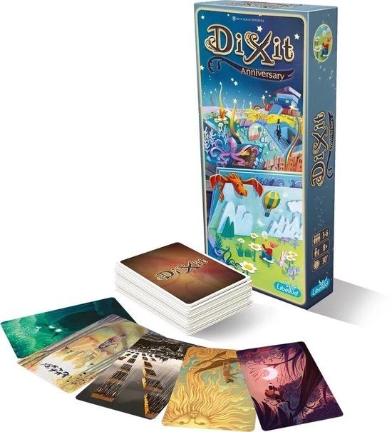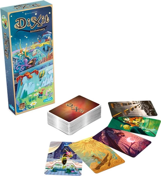Dixit bestaat 10 jaar en dat wordt gevierd met een gloednieuwe expansie Dixit: 10th Anniversary, een uitbreidingspakket van 84 kaarten. Alle illustratoren van vorige uitbreidingen zijn opnieuw uitgenodigd om deel te nemen aan het avontuur. Met verhalen en mythen van over de hele wereld, leidt hun gecombineerde kunst tot een verbluffend resultaat! Laat je meeslepen door de Dixit-spreuk en ervaar een nieuwe en verbazingwekkende reis die je ver voorbij je verbeelding brengt.