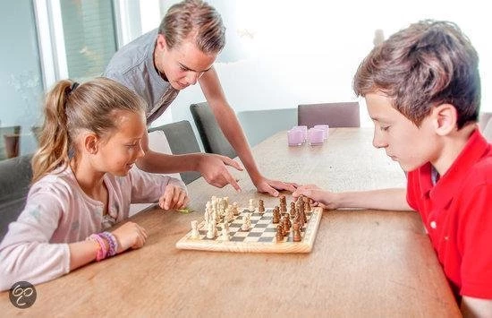 Altijd al willen schaken? Luxe houten uitvoering van het schaakspel. Steeds weer een uitdaging voor de hele familie. Het schaakbord heeft de afmetingen 30×30 cm en 1 schaakvlak heeft de afmeting van 33 mm bij 33 mm. Het schaakspel is inclusief speelstukken, de hoogte van de koning is 77 mm. Het schaakbord is gemaakt van berkenhout, de schaakstukken zijn van essenhout. Het schaakspel wordt geleverd in een luxe verpakking en is inclusief speelregels.