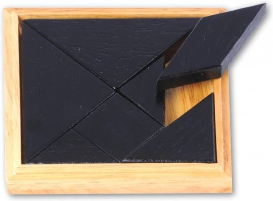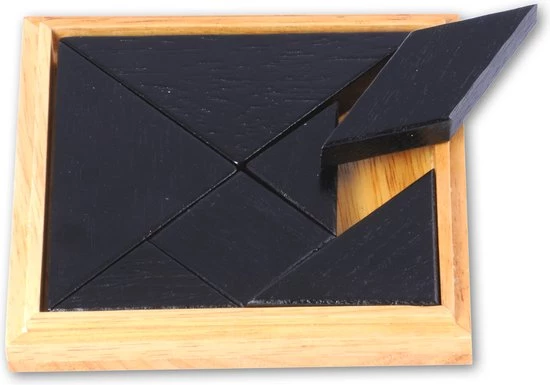 De Tangram puzzel bestaat uit zeven speelstukken die in een bepaalde vorm moet worden gelegd.