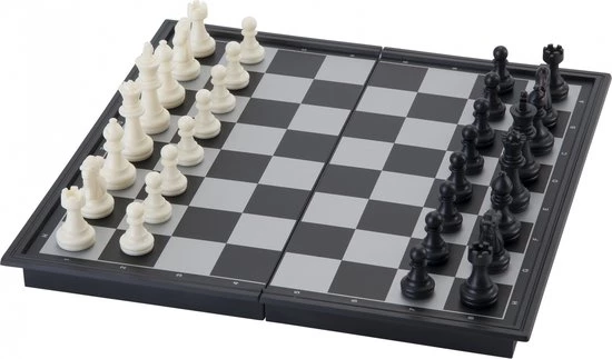 Altijd al willen schaken? Opklapbaar schaakspel, luxe kwaliteit in een colourbox. Het schaakspel heeft magnetische speelstukken zodat de schaakstukken meer grip hebben op het kunststof schaakbord. Het schaakspel wordt geleverd inclusief instructies. De schaakstukken kunnen in de box worden opgeborgen. De afmetingen van het schaakbord zijn 24×24 cm, een enkel schaakvlak is 2,7×2,7 cm. Het schaakbord heeft 19 x 19l lijnen en 9 kruispunten.