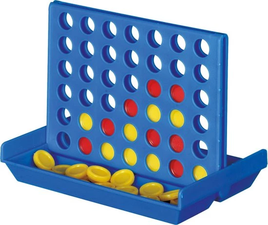 Een reisspel van 4 op een rij, in een handzaam formaat. Afmeting spel: ca. 10,3 x 14,3 x 3,3 cm. Materiaal: kunststof.