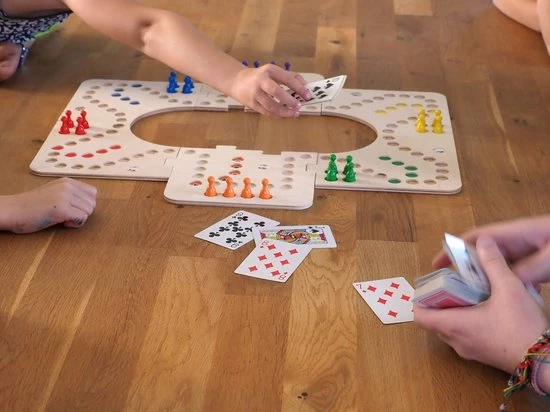 Met dit Keezbord kan je zowel met 2, 4 als 6 personen Keezen. Werk bij het 4- en 6-persoons spel samen met je partner en zorg er voor dat alle pionnen zo snel mogelijk in jullie honk staan. Om het Keezen spel te winnen zul je elkaar moeten helpen!