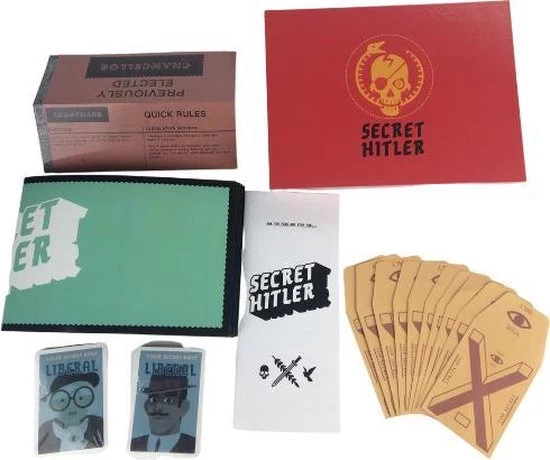 Secret Hitler is een dramatisch spel van politieke intrige en verraad dat zich afspeelt in het Duitsland van de jaren dertig. Elke speler wordt willekeurig en in het geheim toegewezen als liberaal of fascist, en ??n speler is Secret Hitler. De fascisten proberen om wantrouwen te zaaien en hun koelbloedige leider te installeren; de liberalen moeten de geheime Hitler vinden en stoppen voordat het te laat is. Het liberale team heeft altijd een meerderheid.