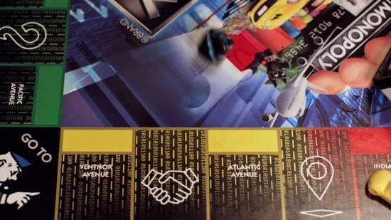 De namen en logo’s van Hasbro, Hasbro Gaming, Parker Brothers en Monopoly, het kenmerkende ontwerp van het spelbord, de vier hoekvakjes, de naam Mr. Monopoly en het figuurtje, evenals elk van de kenmerkende elementen van het bord en de pionnen zijn handelsmerken van Hasbro voor haar beroemde gezelschapsspel en toebehoren.