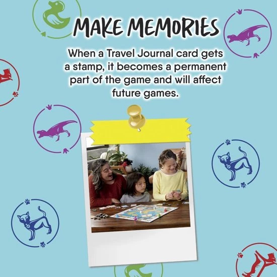 Creëer herinneringen met de Reisjournaalkaarten die onderdeel van toekomstige spellen worden en ontdek gaandeweg leuke weetjes over locaties wereldwijd. Een heerlijk spel voor reisliefhebbers!