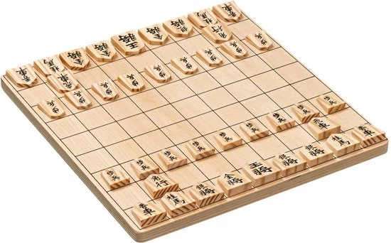Shogi – Japans schaak Het doel van het spel is het vangen van de koning van de tegenstander. De spelstukken van de twee spelers zijn van elkaar te onderscheiden door de richting van puntige kant, niet door hun kleur. Dit toont aan welke stukken elke speler op een gegeven moment beheerst. Vergeleken met schaken heeft shogi charmante verschillen en aanvullende regels. Hout 26x26x1,2 cm Spelregels: Engels / Duits / Nederlands / Frans Leeftijd v.a.: 10 jaar Spelers: 2 Speelduur: ca. 60 minuten