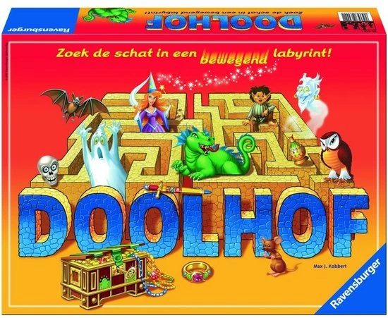 In het Doolhof van Ravensburger spookt het, het is een geestig spel vol verrassingen. Telkens veranderen de gangen; het lijkt wel of het spookt. De schat lag net nog daar! Het doolhof van lijkt wel betoverd. Wie weet ondanks die betovering toch de geheimzinnige voorwerpen en schatten te vinden?