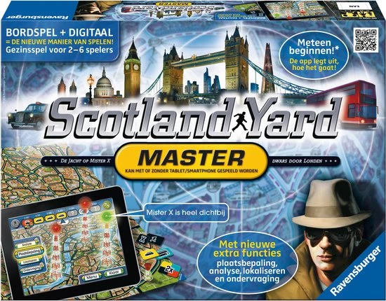 De innovatieve combinatie van bordspel-klassieker en digitaal speelplezier garandeert een spannend avontuur. Scotland Yard Master – Meer pep door de app!