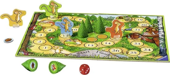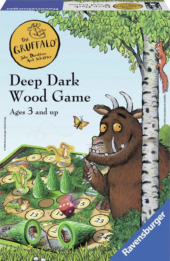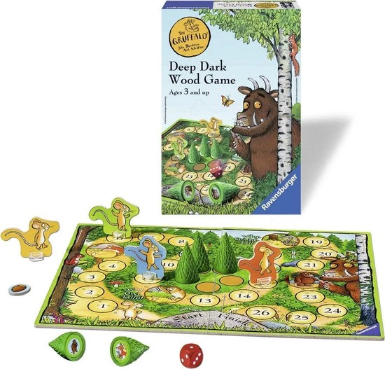 Help jij Muis door het donkere bos de hongerige vos, uil en slang te ontwijken in Ravensburger The Gruffalo Deep Dark Wood Game? Alles wat je nodig hebt is een beetje geluk, een dobbelsteen en een goed geheugen!