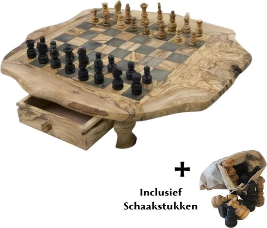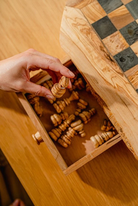 Schaakset Olijfolie & Honing met laden – Schaakspel – Schaakstukken – Schaakbord – Schaken –