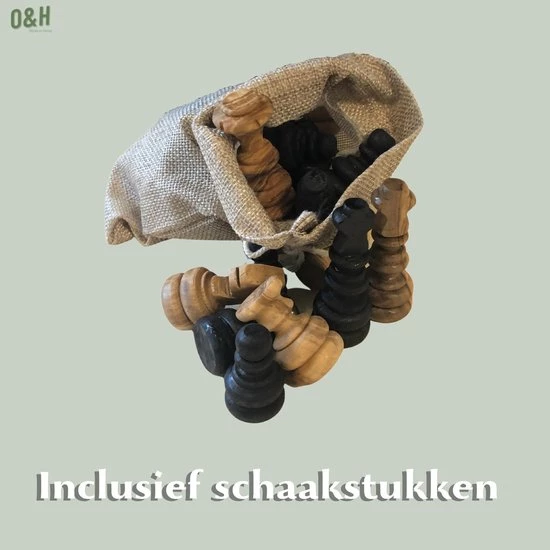 prachtige zwarte en bruine accenten. De schaakstukken hout zijn inbegrepen en zijn ook van