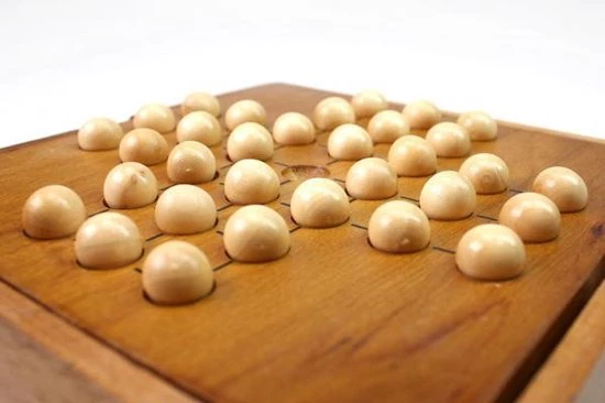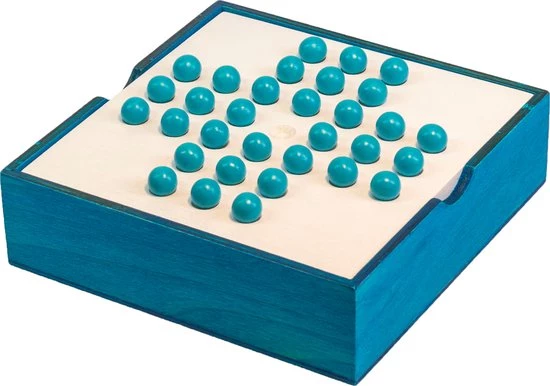 Een klassiek spel dat op verschillende manieren gespeeld kan worden. Leg de 32 kogels in het bord en laat het middelste vak vrij. Bij elke zet spring je over een kogel, die je gelijk verwijdert. De bedoeling is om alle kogels van het bord weg te spelen en één kogel in het middelste gat over te houden.