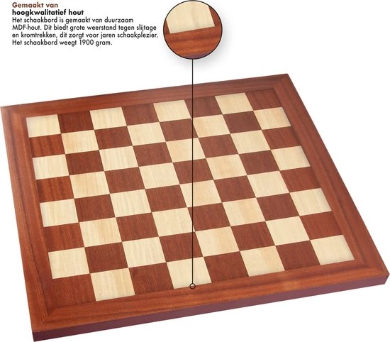 Schaken is een fantastisch spel om op je vrije avonden, weekenden en vakanties te spelen: het is strategisch, je moet zelf een aanvalsplan verbeelden om te winnen en dat terwijl iedere schaakpartij totaal anders is. Moet je de schaakaregels nog leren? Geen probleem! Wij sturen je een E-book met schaakregels in het Nederlands, Engels & Frans. Een mooi voordeel: schaken is goed voor je hersenen, uit onderzoek is gebleken dat het je IQ verhoogt, je geheugen verbetert, je logisch nadenken verbetert & je creativiteit verhoogt. Bovendien heb jij tijdens je schaakpartij een geweldige tijd met je familielid of vriend als tegenstander. Bij dit fantastische spel hoort een fantastisch schaakbord!