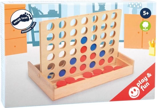 Een grote uitvoering van het bekende spel voor 2 personen. Een houten reisversie van het geliefde klassieke spel. Klap het speelveld in en gebruik als deksel van de doos om geen steentjes kwijt te raken tijdens het reizen. Strategiespel voor kleine en grote kinderen. Oefent de logica op speelse wijze! De stenen hebben een rode en blauwe kleur.