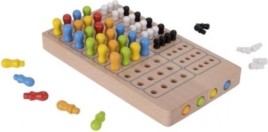 Een klassieker onder de logische spellen! Vaardigheid en logisch denken worden hier evenzeer uitgedaagd. In dit spel voor twee spelers moeten spelers de viercijferige kleurcode van de andere speler decoderen. Het doel is om de gegeven code in zo min mogelijk bewegingen te ontdekken. De gissingen zijn gedocumenteerd met gekleurde en zwart-witte speelstukken op het speelbord. Wanneer de code is ontsleuteld, kunnen de speelstukken gemakkelijk worden opgeborgen in de meegeleverde stoffen tas. Het is een spannend raadspel dat concentratie en een goed geheugen van de spelers vereist.