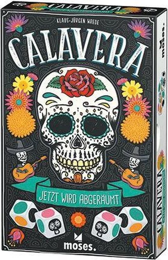 Calavera, de vloek van de schedel. Alleen de kleurrijke verpakking al trekt je aandacht en geeft je zin in een gezellig spelletje. Het spel is echt ontzettend eenvoudig. Elke speler wil zoveel mogelijk kruisjes op het scoreblad zetten. Want veel kruisjes betekent veel punten. Maar kijk uit: Ben je TE inhalig? En schiet je je doel voorbij? Dan verspeel je je waardevolle punten. Kies de beste worpen en zet je kruisjes op de goede plek op de kaart. Dat is de ENIGE manier op het spel te winnen. Have fun!
