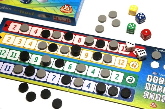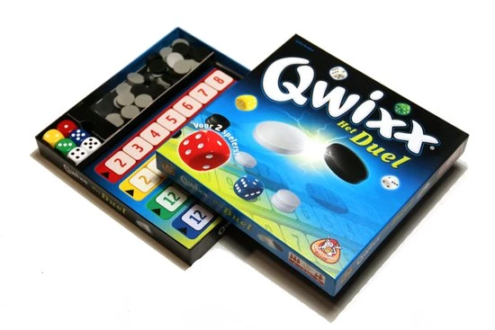 In het Qwixx: het duel dobbelspel krijgt het bekroonde originele dobbelspel een vervolg… Qwixx: het duel is een variant voor twee spelers heeft hetzelfde gevoel maar speelt uiteindelijk heel anders door de toevoeging van een nieuw spelmechanisme. Het voorste schijfje in elke rij kan namelijk door je tegenstander geslagen worden, maar alleen als je er zelf geen toren van hebt gemaakt! Zo zul je moeten aanvallen en verdedigen en blijft het spel spannend tot het einde. Eenvoudig en enorm leuk!