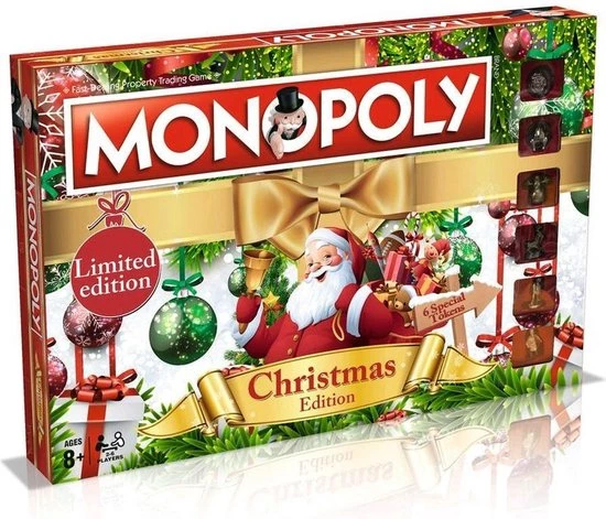 Ho ho ho, Merry Christmas! De feestdagen beginnen hier met deze speciale Kerst uitvoering van Monopoly. Speel met een van de feestelijke pionnen waaronder Rudolf, een sneeuwpop en de Kerstman. Reis de wereld rond en verzamel je favoriete feestdagen attributen; van de Kerstman en zijn rendier tot een compleet feest, de kerstboom en het winkelen voor de feestdagen.